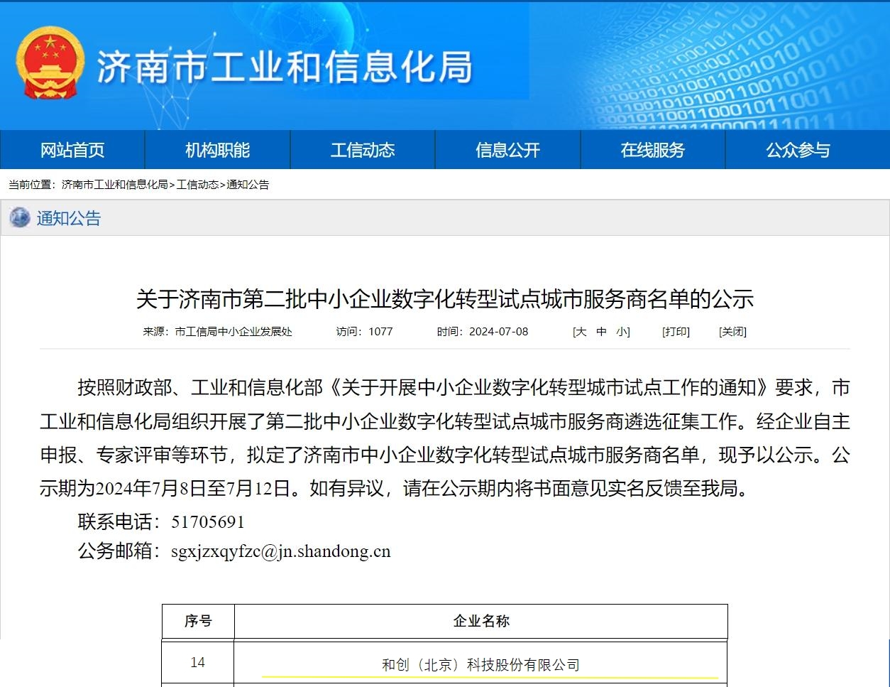 近日,濟(jì)南市工業(yè)和信息化局正式公布了濟(jì)南市第二批中小企業(yè)數(shù)字化轉(zhuǎn)型試點(diǎn)城市服務(wù)商名單,和創(chuàng)(北京)科技股份有限公司(以下簡稱“和創(chuàng)科技”)憑借其深厚的行業(yè)知識積累、卓越的SaaS系統(tǒng)實(shí)施能力以及完善的行業(yè)服務(wù)生態(tài),成功入選該名單,標(biāo)志著和創(chuàng)科技在數(shù)字化轉(zhuǎn)型領(lǐng)域的實(shí)力和成就得到了官方的高度認(rèn)可。