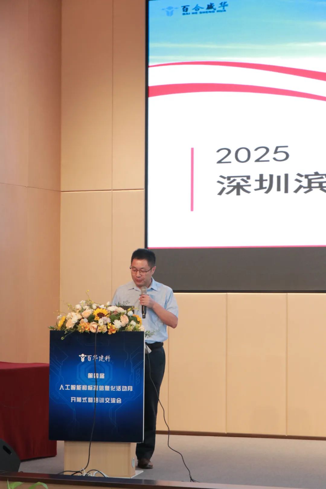 隨后,公司人工智能發(fā)展部副總經(jīng)理鄒佳運(yùn)發(fā)布《人工智能與標(biāo)準(zhǔn)信息化成果與未來發(fā)展》報(bào)告。他指出,“百華智造”管理系統(tǒng)已覆蓋公司94%的業(yè)務(wù)流程,實(shí)現(xiàn)跨部門數(shù)據(jù)共享,AI助手、AI視覺識別及AI報(bào)表分析等技術(shù)已全面落地應(yīng)用。未來將重點(diǎn)強(qiáng)化預(yù)算管理模塊功能,通過授權(quán)精簡審批流程,深化AI應(yīng)用,助力項(xiàng)目提質(zhì)增效。