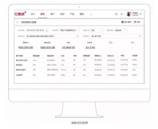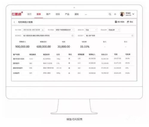 為幫助企業(yè)清晰地獲知銷售收入與利潤(rùn)、做出更合適的業(yè)務(wù)決策,紅圈通進(jìn)銷存提供了銷售毛利報(bào)表、訂退單報(bào)表、商品銷售報(bào)表、客戶訂貨報(bào)表、區(qū)域銷售報(bào)表等五大類報(bào)表,從訂單變動(dòng)趨勢(shì)、商品、客戶、區(qū)域等多個(gè)角度進(jìn)行數(shù)據(jù)分析統(tǒng)計(jì)。通過報(bào)表,企業(yè)可實(shí)時(shí)掌控銷售現(xiàn)狀、獲知市場(chǎng)布局,進(jìn)而優(yōu)化資源投放。