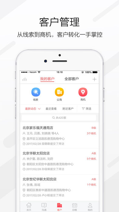 紅圈CRM是一款面向大客戶和項(xiàng)目制銷售團(tuán)隊(duì)的移動(dòng)CRM軟件,幫助企業(yè)對客戶信息以及銷售人員和客戶的互動(dòng)情況進(jìn)行跟蹤,打通從銷售線索到客戶、商機(jī)、合同、訂單直至回款的全流程,幫助企業(yè)縮減銷售周期、提升業(yè)績。