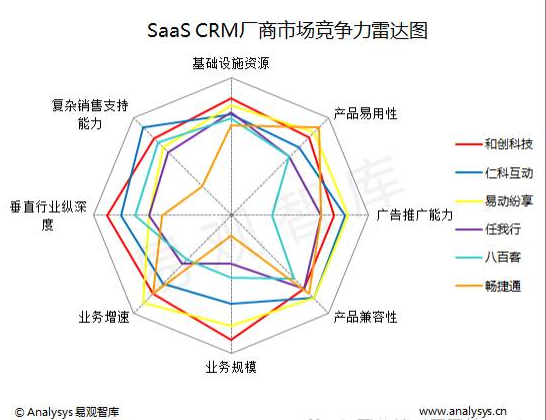 SaaS CRM廠商市場競爭力雷達(dá)圖