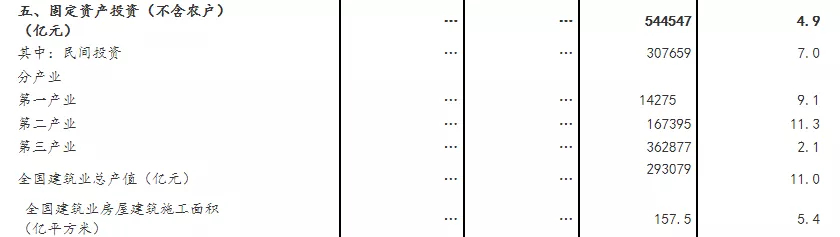 分產(chǎn)業(yè)看,第一產(chǎn)業(yè)投資14275億元,比上年增長(zhǎng)9.1%;第二產(chǎn)業(yè)投資167395億元,增長(zhǎng)11.3%;第三產(chǎn)業(yè)投資362877億元,增長(zhǎng)2.1%。