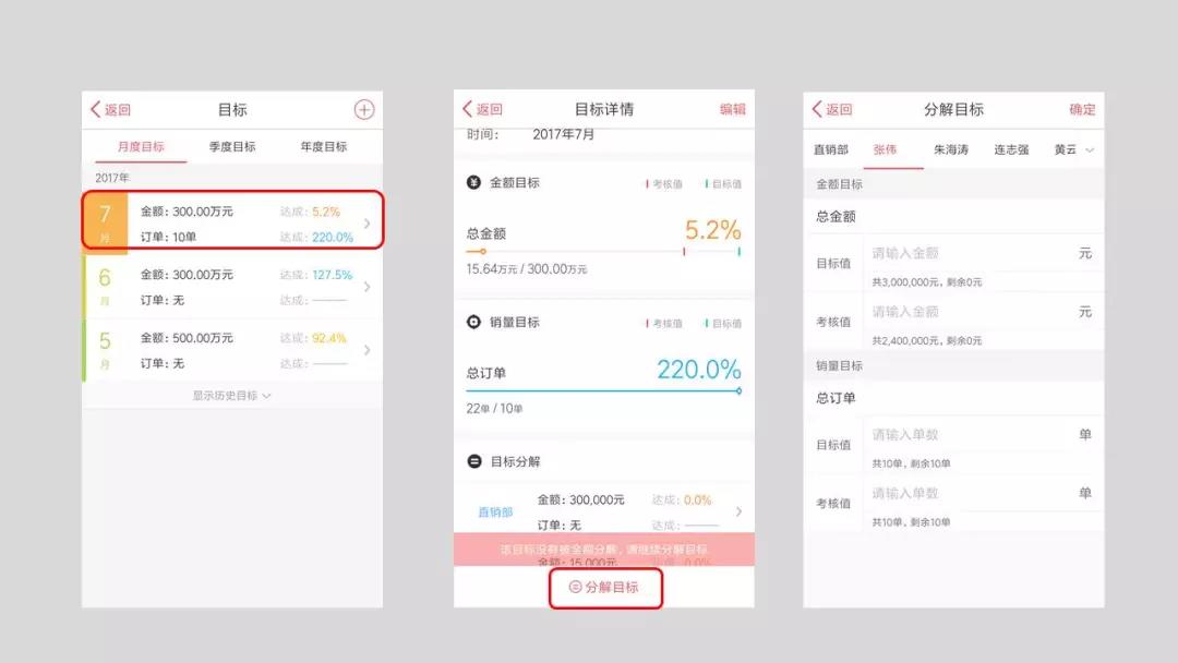 紅圈CRM「銷售目標」展示: