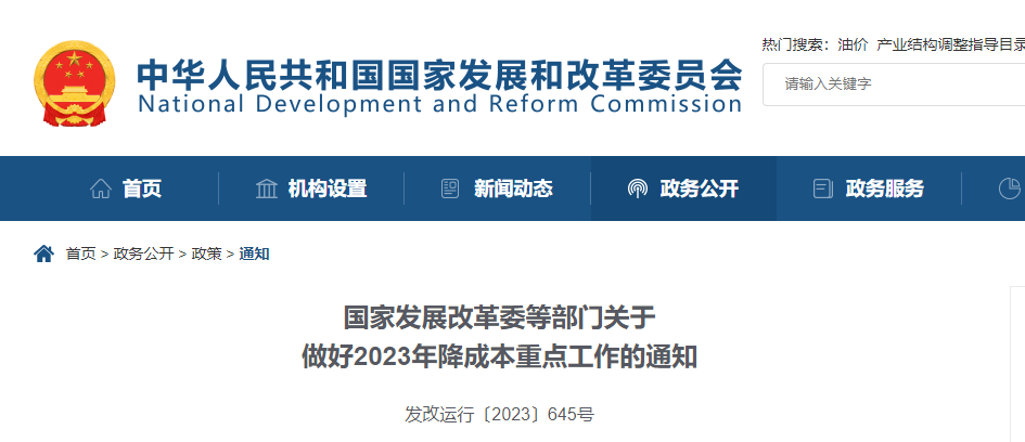 近日,國(guó)家發(fā)展改革委等四個(gè)部門發(fā)布了關(guān)于做好2023年降成本重點(diǎn)工作的通知,《通知》主要提出8個(gè)方面22項(xiàng)任務(wù),具體內(nèi)容如下: