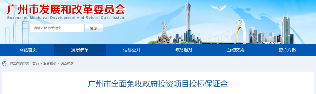 近日,廣州市發改委發文:廣州市全面免收政府投資項目投標保證金。