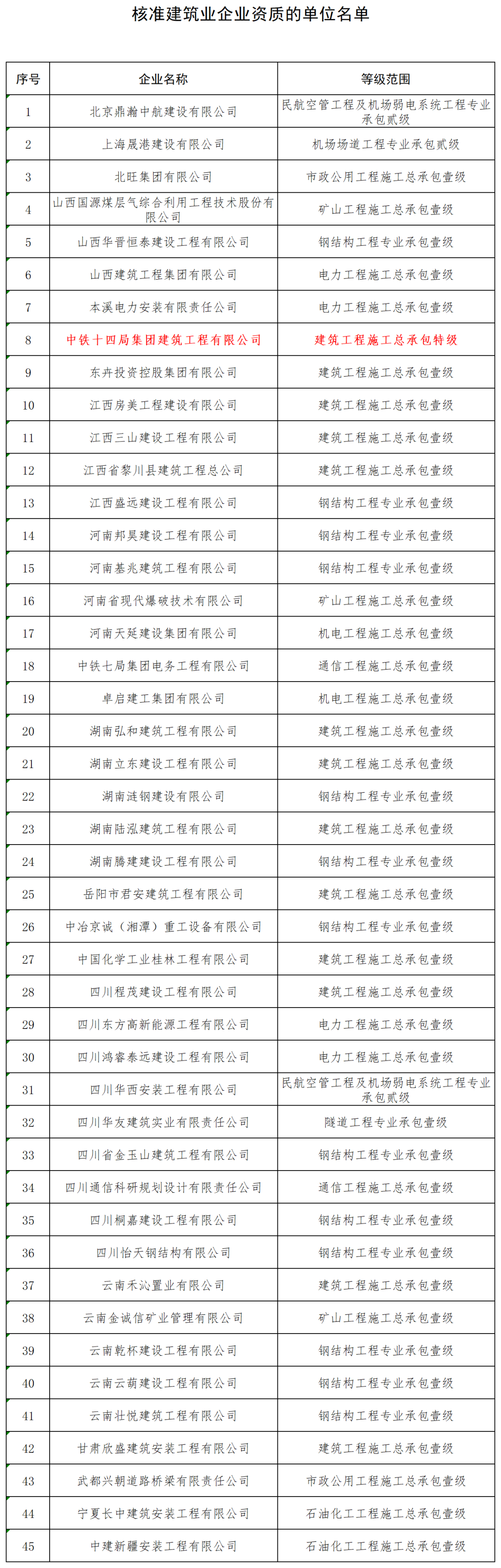 最新一批建設(shè)工程企業(yè)資質(zhì)名單公布!1家建企“升特”!
