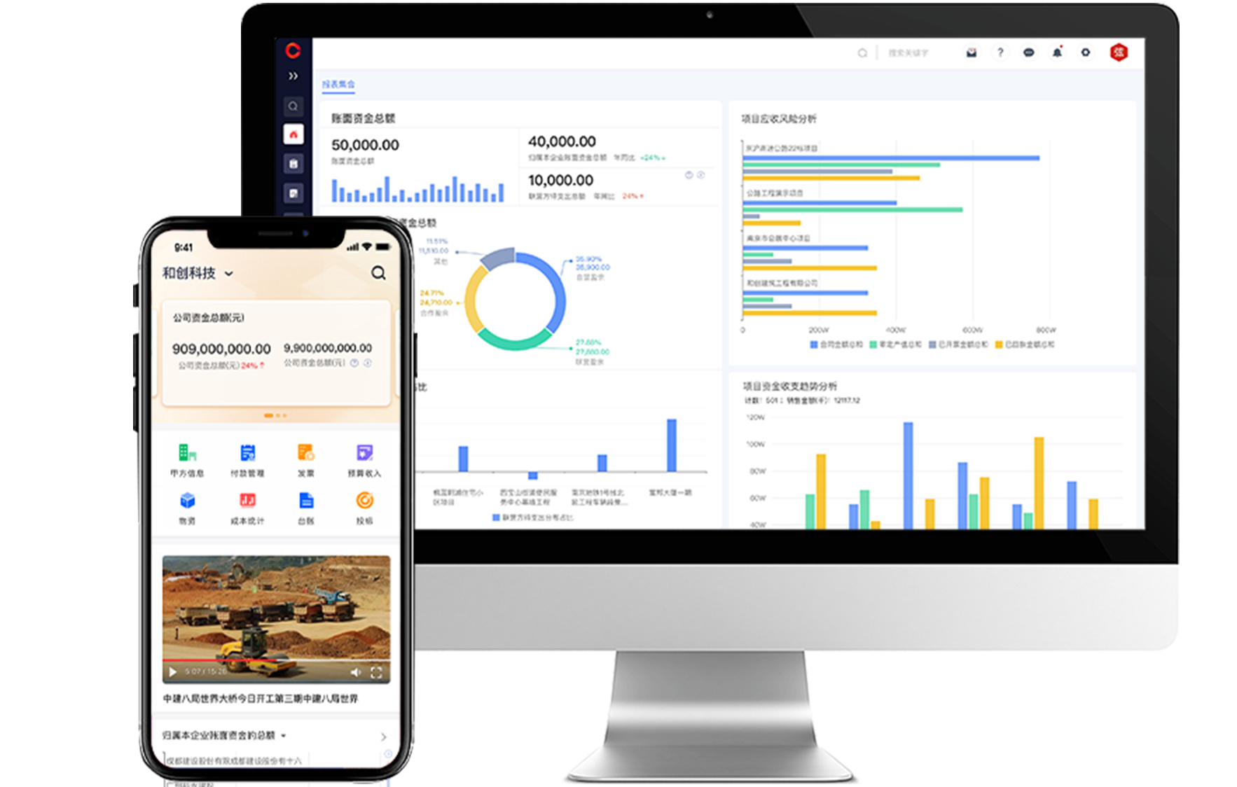 和創科技依托“SaaS+PaaS”模式,結合云計算、大數據、AI技術和BI能力,自主研發了紅圈工程項目管理系統,致力于為光伏企業提供專業的數字化解決方案,針對企業資金管理薄弱、收益成本不可控、流程節點不清晰、過程資料不完整等痛點,梳理科學的標準化管理流程,實現在線快速審批、風險預警、電站收益管理、對上對下結算管理、收付款管理、資金管理、資料管理、材料收發存管理等多種智能化便捷管理模式,幫助企業靈活配置多樣化的管理模塊,實時呈現項目動態數據、提供智能數據分析,幫助管理層實時了解項目的整體運營情況,及時把控風險。