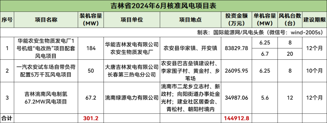 吉林核準(zhǔn)3個(gè)風(fēng)電項(xiàng)目,總規(guī)模301.2MW,總投資144912.8萬元,均為陸上風(fēng)電項(xiàng)目。