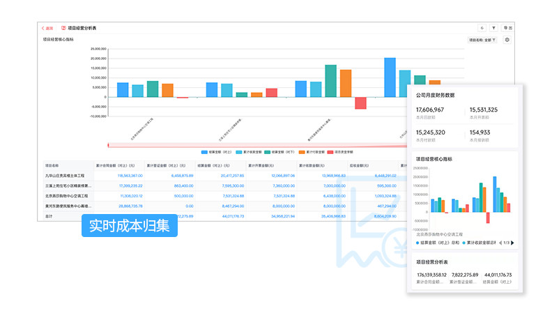 2、管理層無法實(shí)時(shí)掌握項(xiàng)目收支情況,各類數(shù)據(jù)不能及時(shí)記錄并匯總。項(xiàng)目實(shí)施過程中的人機(jī)材成本超標(biāo)、進(jìn)度拖延、質(zhì)量不過關(guān)等問題管理層也無法及時(shí)得知,更不能做出相應(yīng)的糾偏決策,最終導(dǎo)致成本超標(biāo)。
