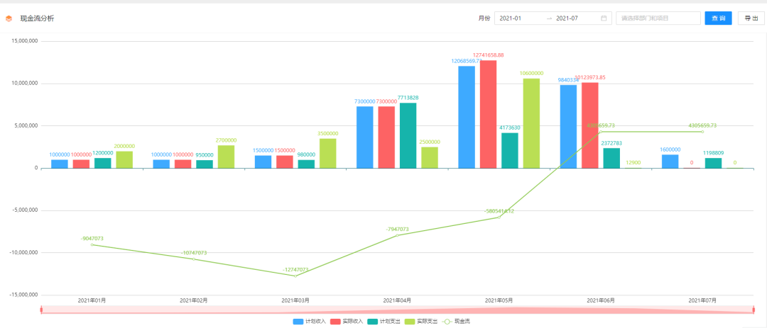 紅圈實時生成經營數據可視化報表,合同金額、回款金額、開票金額、支付金額、動態利潤金額等關鍵指標一鍵可查,一屏總攬全局,可實時查看每個項目的經營情況,為戰略決策提供精準數據支撐。