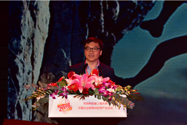 2016中國企業級移動應用產業論壇2月25日在北京舉行,和創科技董事長李漢生在論壇發表主題演講,分享了和創科技七年創業的發展歷程。