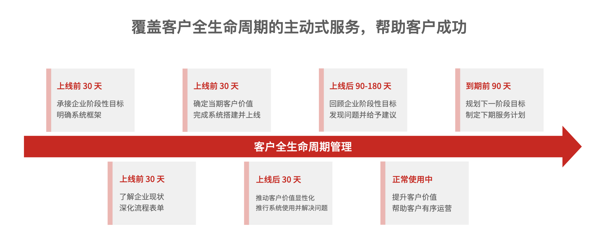 以客戶為中心的全生命周期管理,以 5-10 年企業(yè)經(jīng)營目標為導向的階段性價值兌現(xiàn),陪伴企業(yè)成長,助力企業(yè)實現(xiàn)數(shù)字化轉(zhuǎn)型